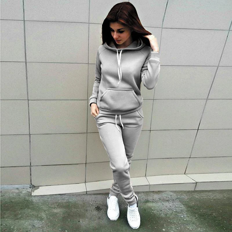 Спортивный костюм женский из двух предметов, свитшот с капюшоном и карманами, Осень-зима