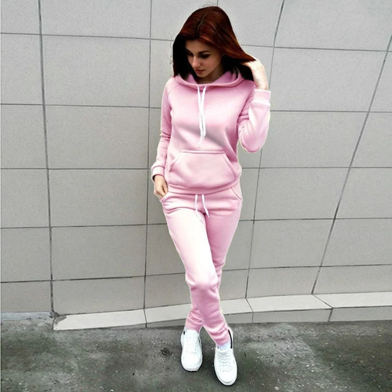 Женский спортивный костюм, толстовка с капюшоном + штаны, комплект из двух предметов, пуловер с капюшоном, Толстовка С Карманами, осенне-зимние женские комплекты размера плюс XS-4XL