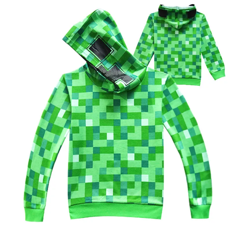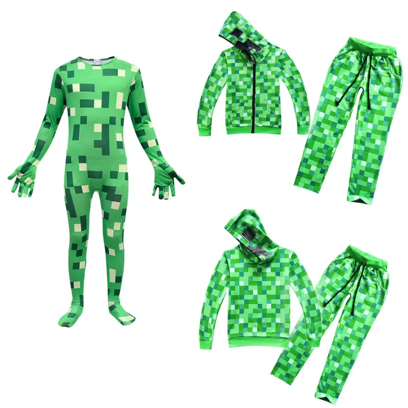 Детский костюм для Хэллоуина, зеленый Крипер, Забавный мультяшный свитшот с капюшоном, куртка с игровым принтом, верхняя одежда, комбинезон для диджея