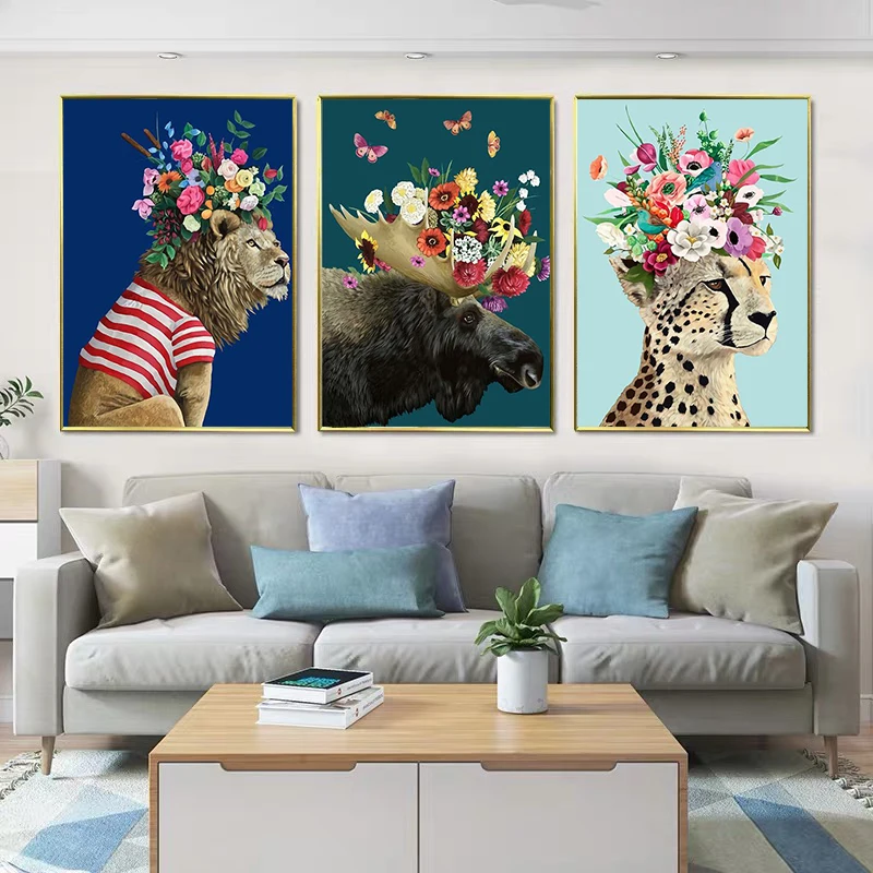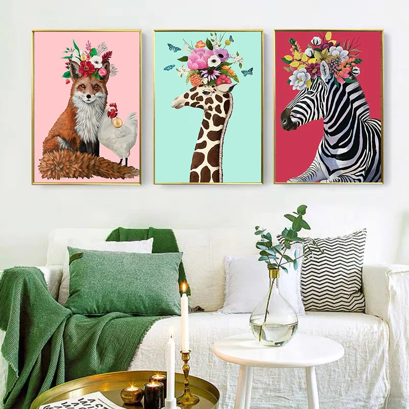 Красочный леопард, жираф, Лев, лиса, цветок, настенная живопись, скандинавские плакаты и принты, настенные картины, декор детской комнаты