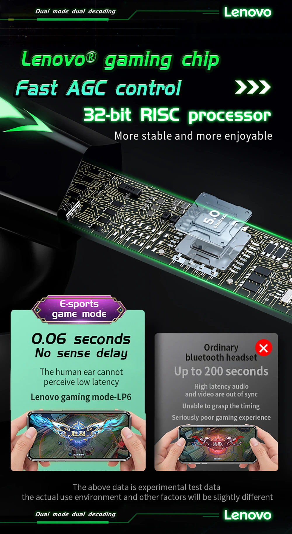 Оригинальные беспроводные наушники Lenovo LP6, TWS, игровые наушники, Bluetooth 5,0, низкая задержка, гарнитура с микрофоном, стерео звук, спортивные наушники