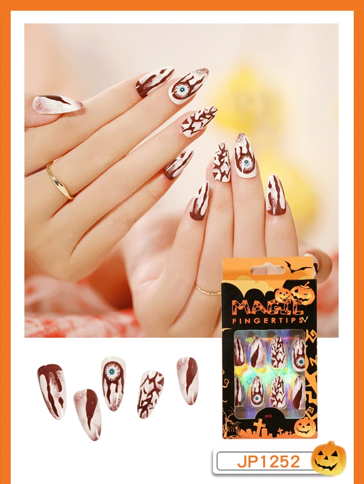 24 шт.кор. накладные ногти на шпильке в стиле Хэллоуин съемные носи...
