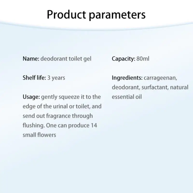 Частота использования: небольшой цветок используется для 7 дней, и туалетный гель используется для 14 маленьких цветов, которые используется для около 3 месяцев