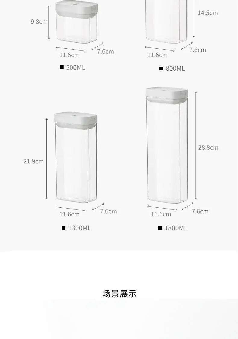Особенности!100% Новинка!Штабелируемые герметичные пищевые контейнеры кухонные коробки для хранения банок канистры контейнеры.!Пищевой материал. Эти контейнеры для хранения в кладовой изготовлены из прочного пластика, без BPA. Прозрачные контейнеры позволяют удобно видеть, что внутри. Вы можете легко получить то, что хотите, не открывая каждый контейнер.!Герметичные и герметичные контейнеры. Закрывающие крышки с силиконовыми уплотненными кольцами делают эти контейнеры для хранения герметичными, которые всегда сохраняют вашу еду сухой и свежей. Емкость подходит как для пожилых людей, так и для детей, легко открывается одной рукой!Экономия пространства и универсальность. Идеально подходит для хранения спагетти, выпечки, хлопьев, муки, сахара, овса, макарон, риса, кофе, чая, закусок, орехов и других сухих товаров.!Помогите организовать вашу кухню и кладовую. Больше не запутывается, вы можете получить все, что хотите, очень быстро. Благодаря штабелируемому и компактному дизайну, эти контейнеры будут более эффективно использовать каждый дюйм ваших кухонных Шкафы для кладовки.!!Характеристики!Материал: экологически чистый ПП + ПЭТ!Цвет: прозрачный!Емкость: 500 мл, 800 мл, 1300 мл, 1800 мл!Размер (Д * Ш * В): прибл.!500 мл 11.6x7.6x9.8 см/4,57x2,99x3,86 "!800 мл 11.6x7.6x14.5 см/4,57x2,99x5,71 "!1300 мл 11.6x7.6x21.9 см/4,57x2,99x8,62 "!1800 мл 11.6x7.6x28.8 см/4,57x2,99x11,34 "!!Внимание!Пожалуйста, учитывайте небольшие отклонения в размере из-за измерения человеком!Из-за эффекта светильник и яркости монитора, его возможны незначительные отклонения s светильник различия между цветовых тонах между фотографией и самим товаром!Эти контейнеры для хранения не могут использоваться для отопления, микроволновых печей, печей и посудомоечных машин и не используются для хранения горячей пищи, потому что материалы для домашних животных не могут быть выше 60 градусов Цельсия!!Посылка включена!1 контейнер для хранения еды