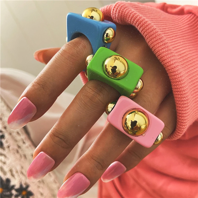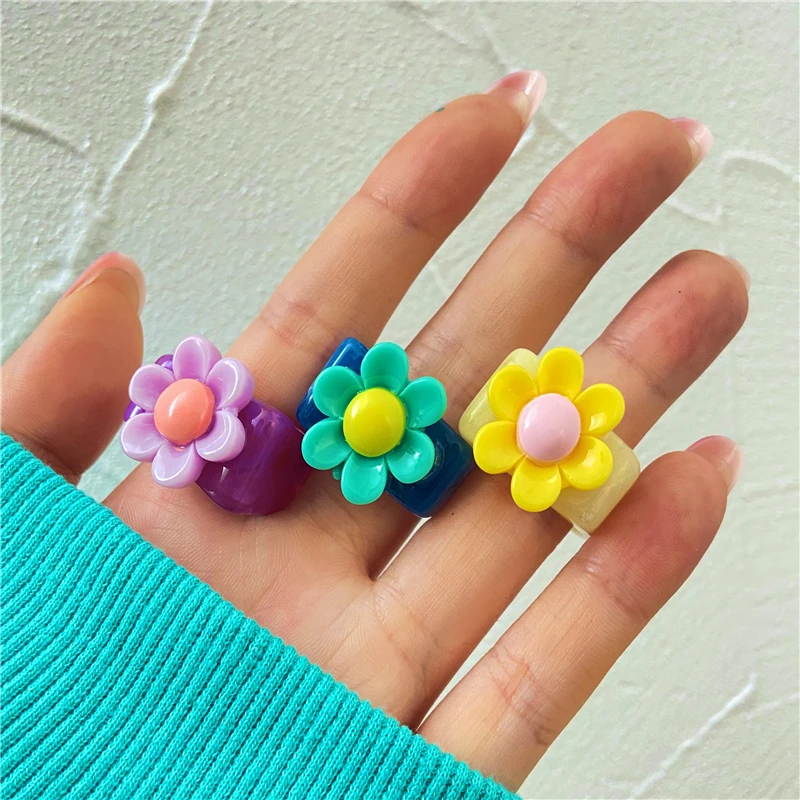 Женские кольца из смолы, корейские Регулируемые кольца Y2K контраст...
