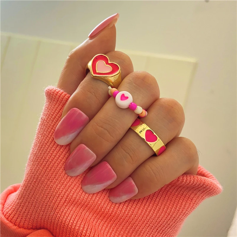 Y2K винтажное эмалированное кольцо в форме сердца, индивидуальные к...