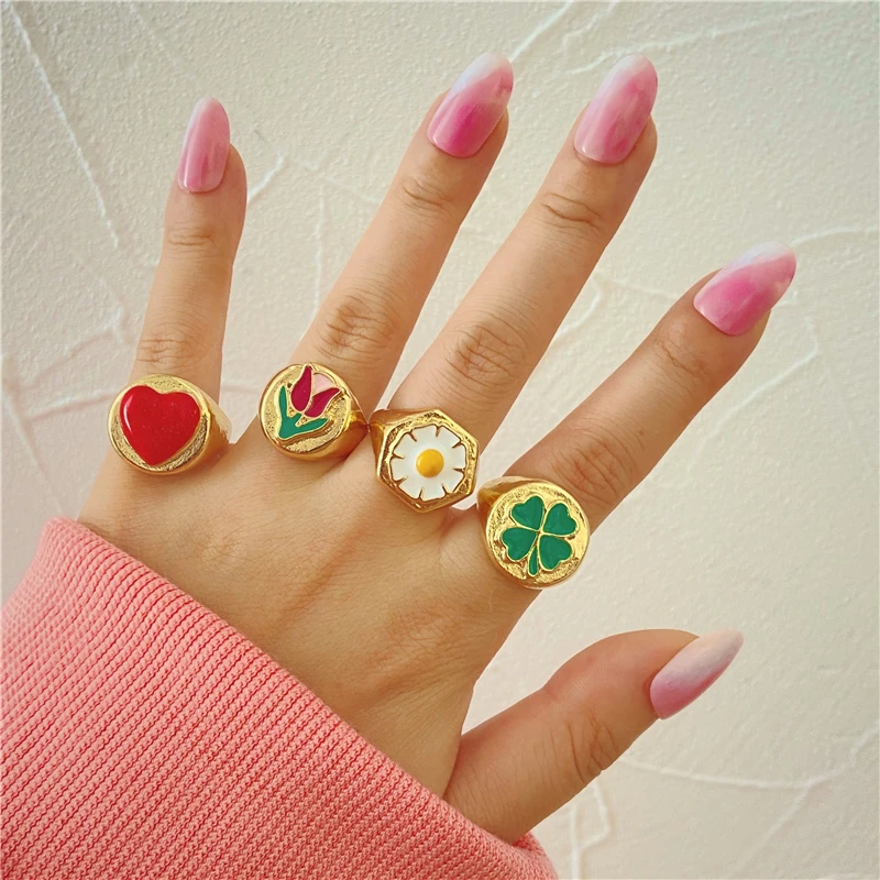 Цветное кольцо в форме сердца Y2K, кольцо в форме сердца, оптовая продажа, ювелирные изделия, набор из цветов и растений карамельных цветов, женские милые модные украшения