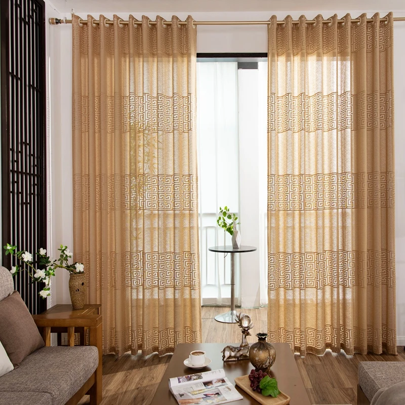 Шторы вышитые золотистые для гостиной, спальни, кабинета, 2021