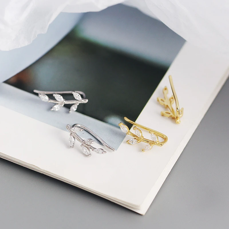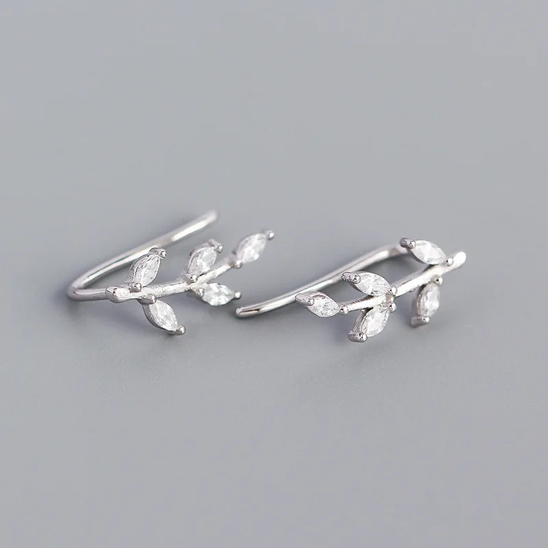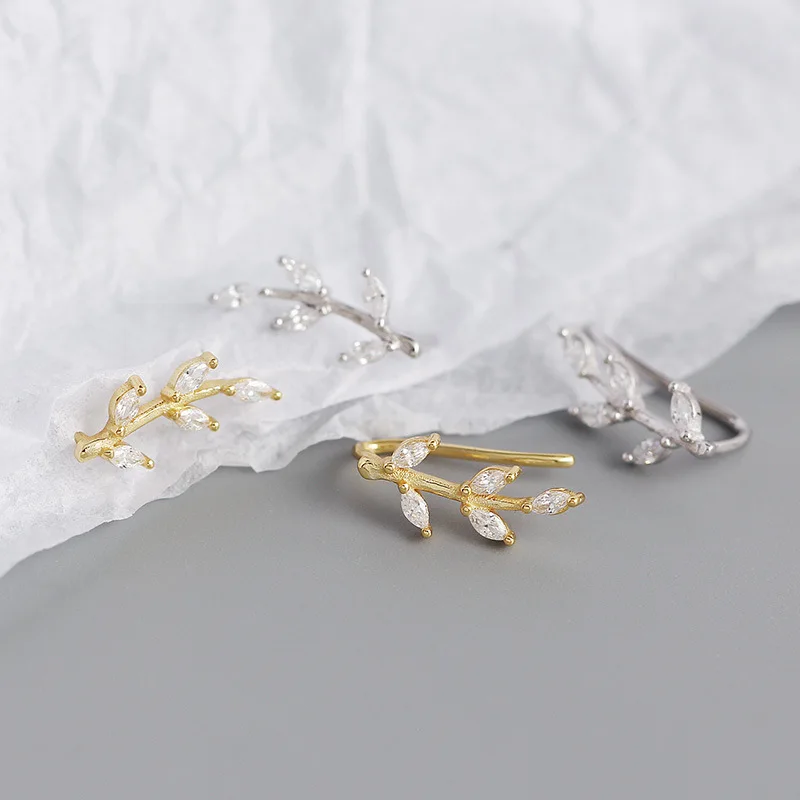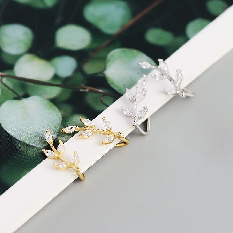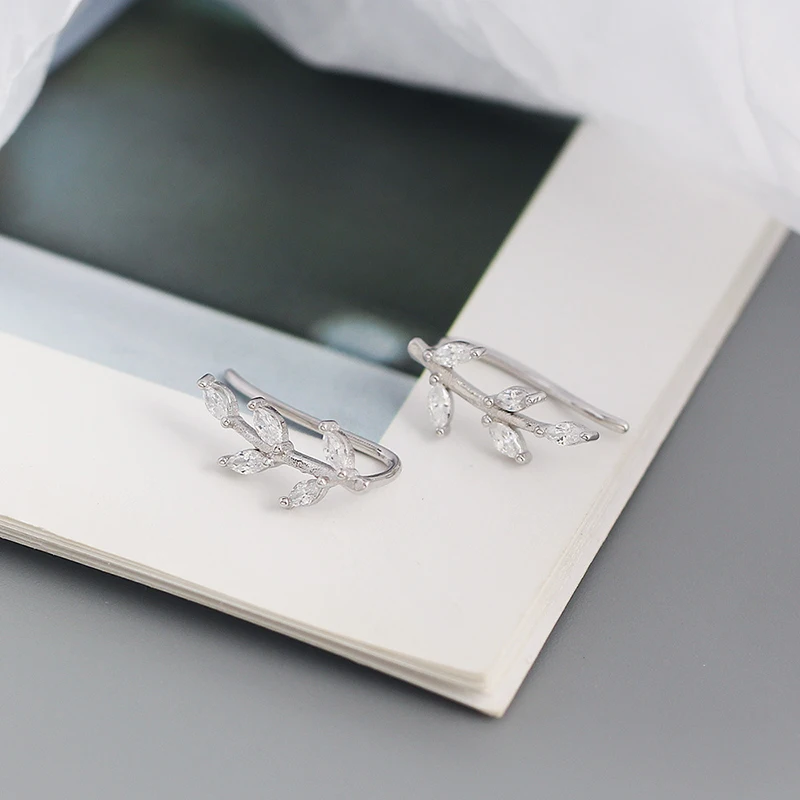 Женские серьги-клипсы WANTME, из стерлингового серебра 925 пробы, с блестящими кристаллами циркония, в виде листьев, для вечеринок, ювелирные украшения, серебряный пирсинг
