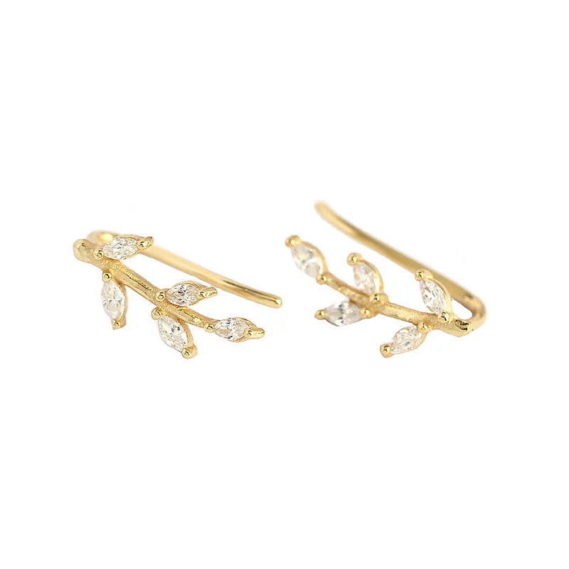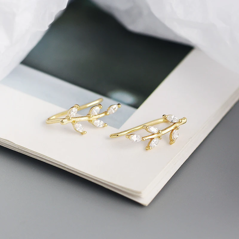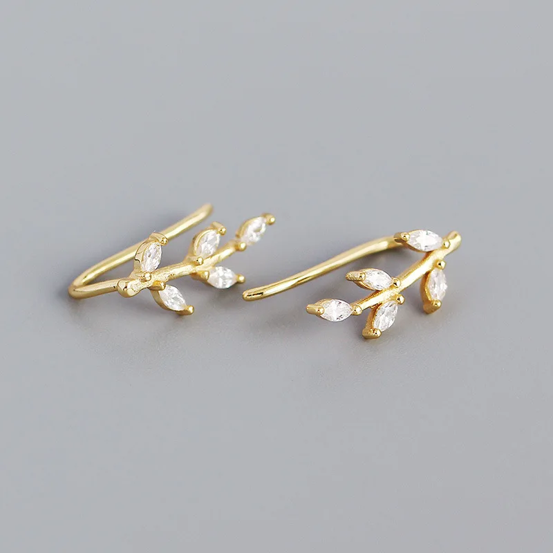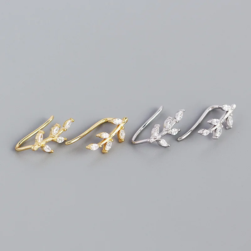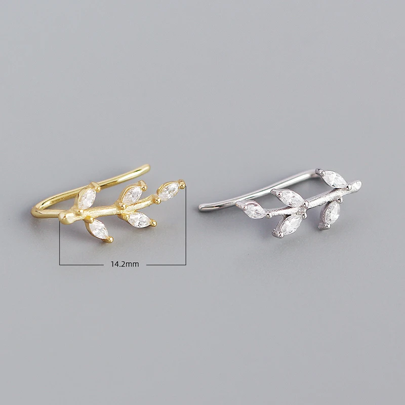 Женские серьги-клипсы WANTME, из стерлингового серебра 925 пробы, с блестящими кристаллами циркония, в виде листьев, для вечеринок, ювелирные украшения, серебряный пирсинг