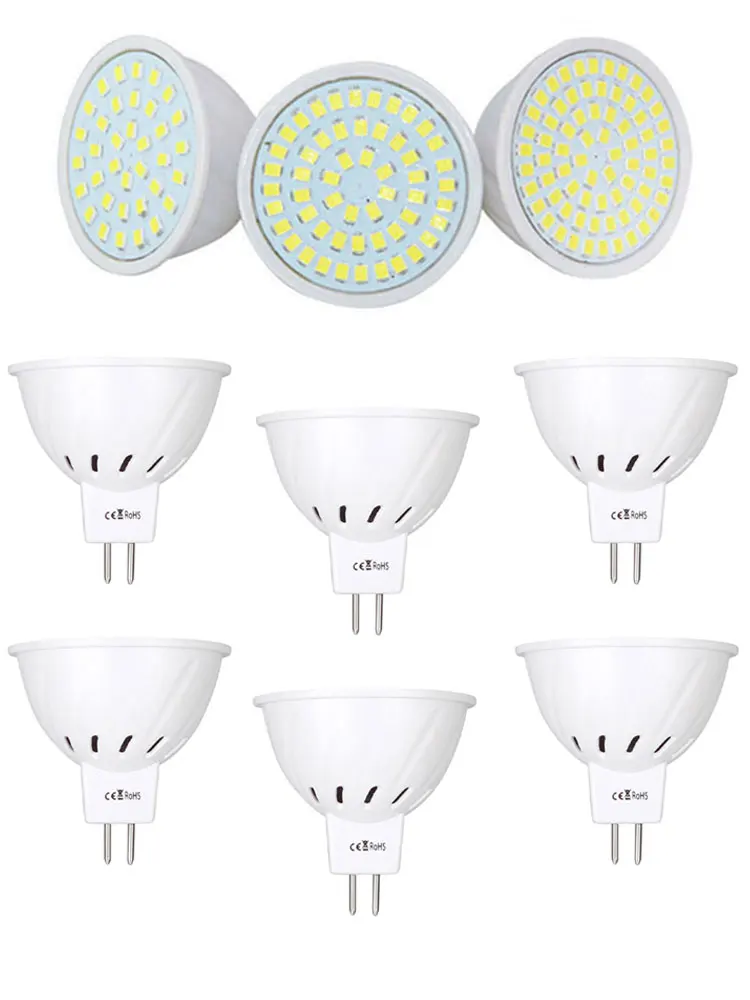 10 шт./лот MR16 12V 24V LED лампочки 220V 110V SMD 2835 Светодиодный прожектор лампа 3 Вт 5 Вт 7 Вт 36 54 72LED белый MR 16 светодиодные лампы для дома
