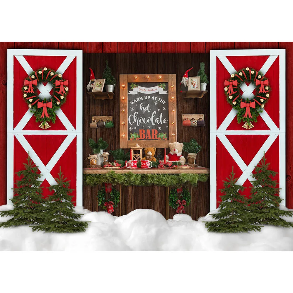 Mocsicka Рождественский фон для фотосъемки красная дверь снежное поле дерево Рождественский венок фон для фотосъемки детская фотосессия студия реквизит