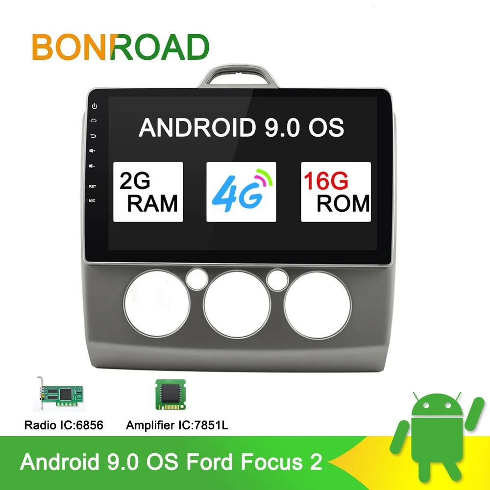 Автомобильный мультимедийный плеер Bonroad, 10 дюймов, Android 9,0, для focus 2 Mk2, радио, GPS-навигация, видео, аудио плеер, 4 Гб ОЗУ, 2 Гб ПЗУ, 16 ГБ