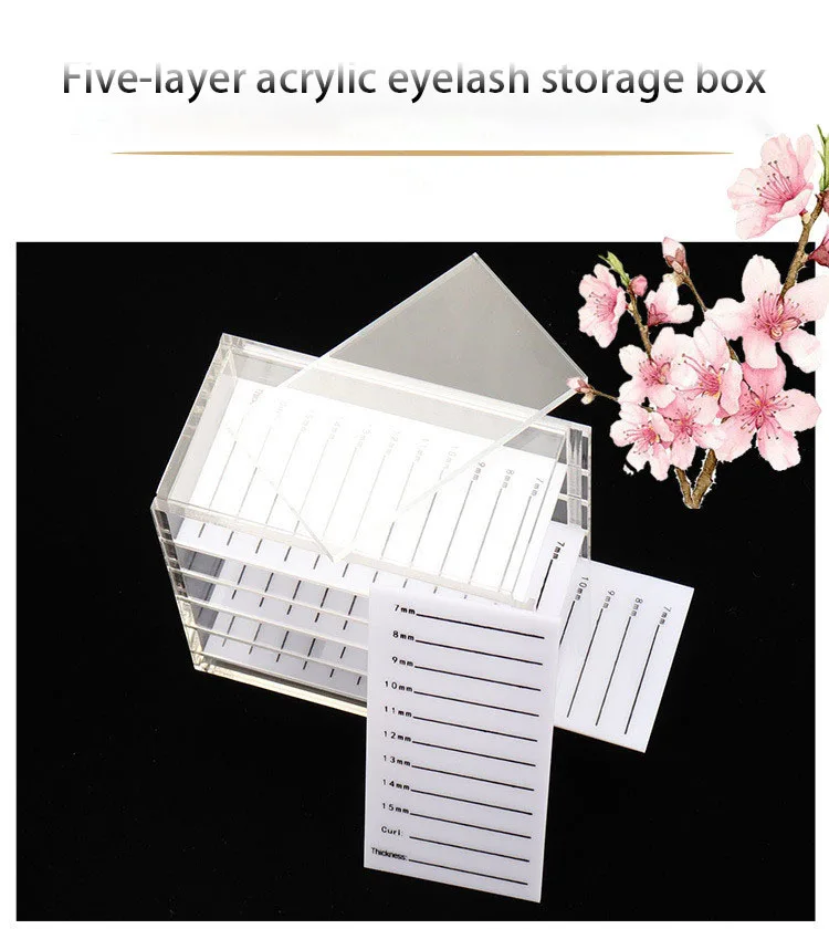 Акриловый поддон для наращивания ресниц, 5 слоев, прозрачная коробк...