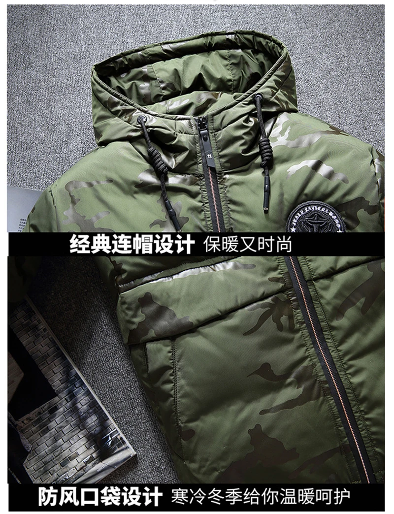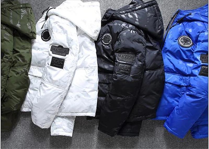 Зимняя теплая куртка на белом утином пуху, мужская верхняя одежда, повседневные толстые парки для снега, пальто с капюшоном, камуфляжная теплая ветровка, пуховая куртка