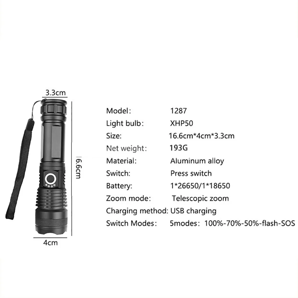 Светодиодный фонарик с лампой XHP50.2, тактический заряжаемый фонар...