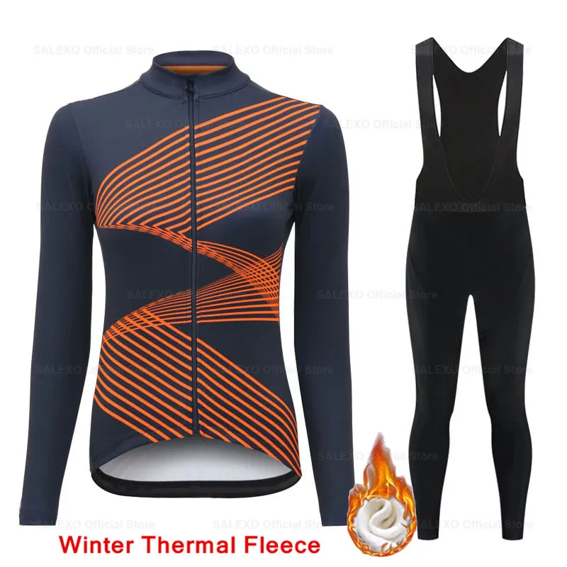Женский костюм для велоспорта, зимний флисовый костюм с длинным рук...