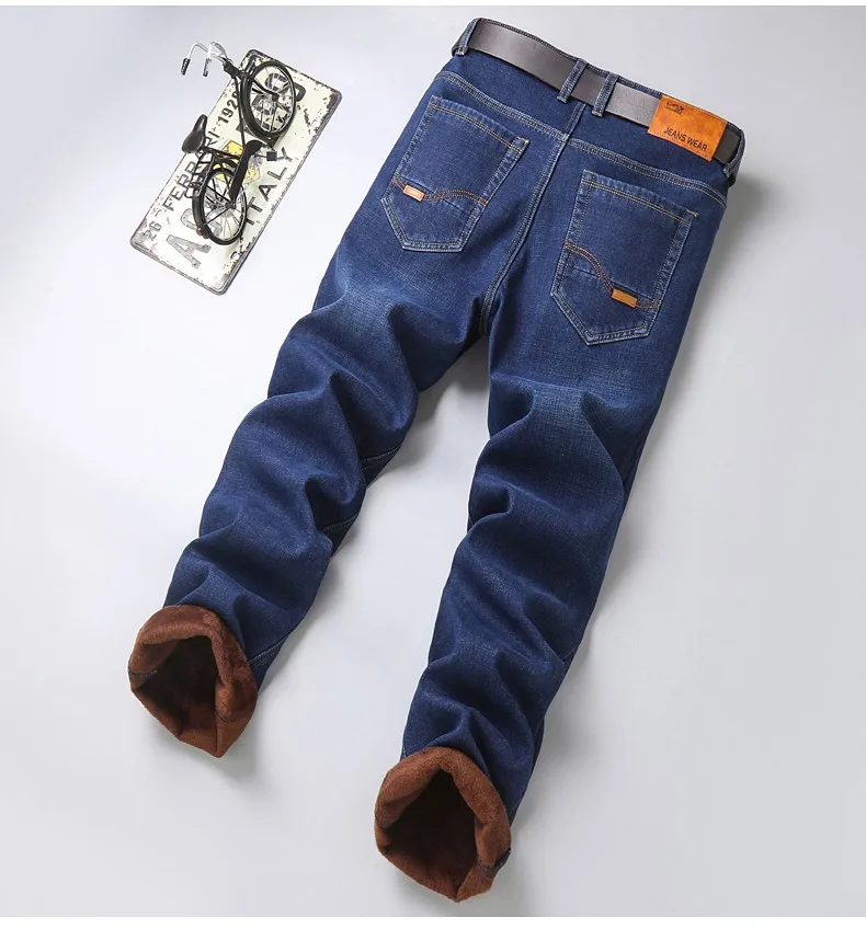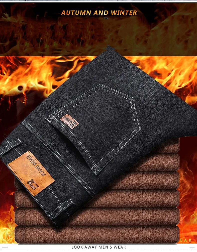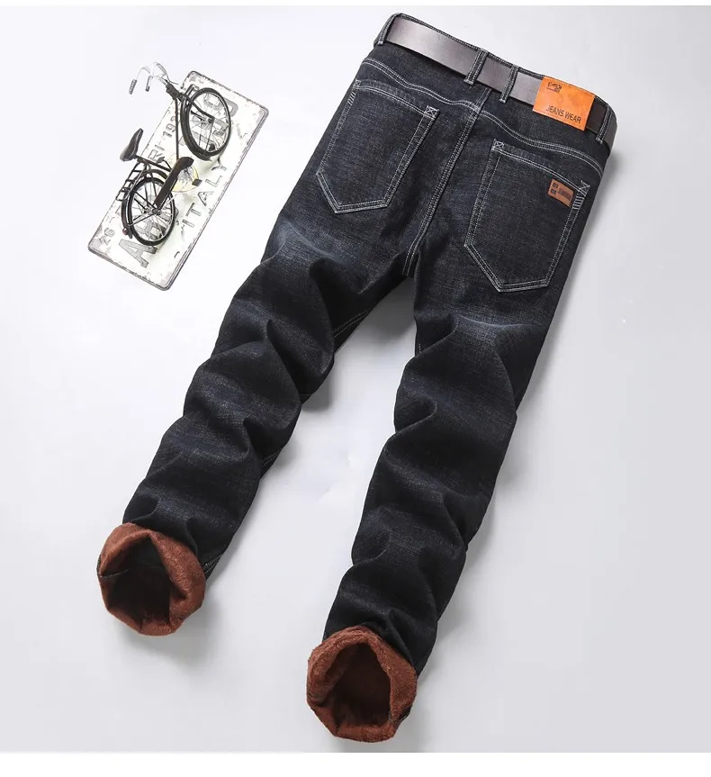 Джинсы мужские, на флисе, зимние, теплые, стрейчевые, прямые, хлопковые, большого размера, 2021