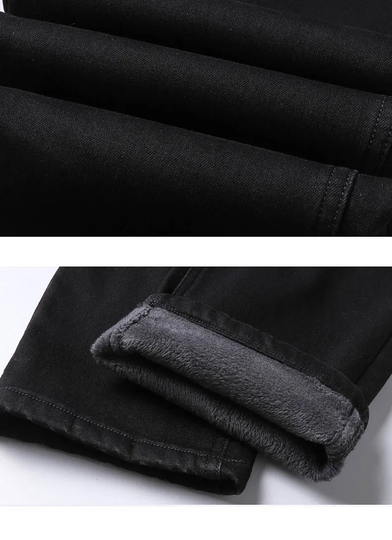 Зимние мужские джинсы 2021, черные облегающие эластичные плотные ба...