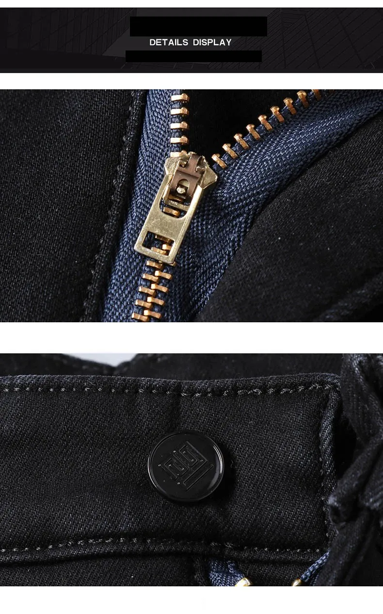 Новинка 2021, мужские Модные зимние джинсы, мужские черные облегающ...