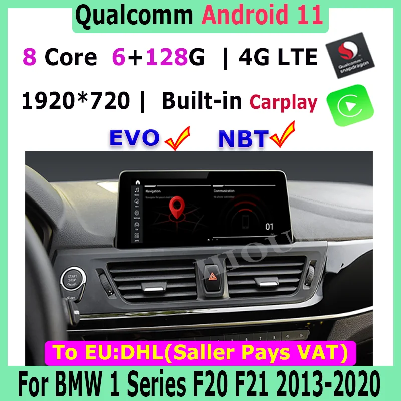 Автомобильный мультимедийный плеер, 10,25 дюйма, Snapdragon, Android 11, 6 +, 128 ГГц, GPS-навигация для BMW 1 серии F20 F21 2013-2017, стерео Carplay