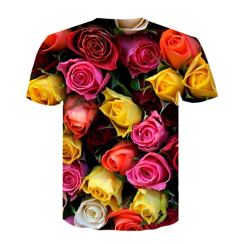 Футболка с 3D-принтом красивых роз для мужчин и женщин, повседневная тенниска в винтажном стиле, модные топы, уличная одежда в стиле хип-хоп, лето