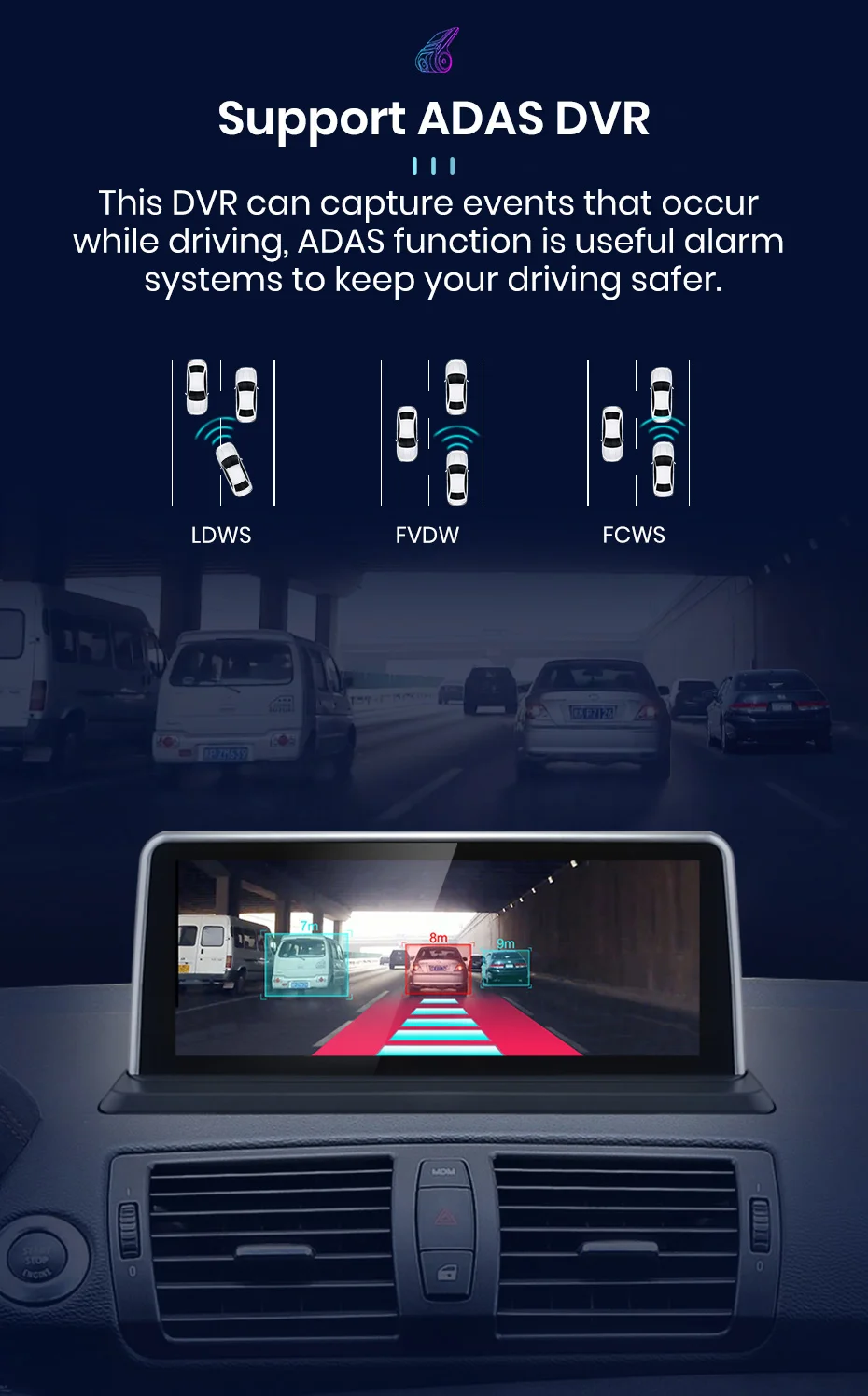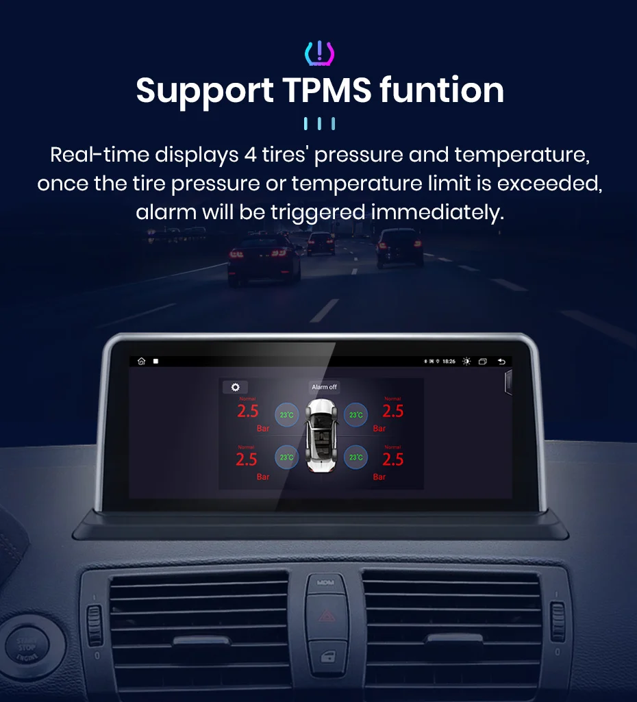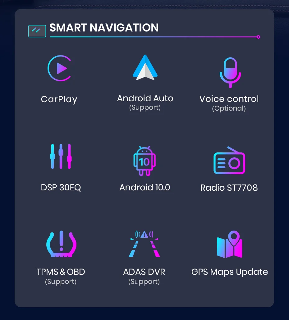 Система Android 10,0 + 10,25 дюймовый IPS экран + 8 четырехъядерный + разрешение 1024*600 + RAM/ROM:2 ГБ/32 ГБ/4 ГБ/64 Гб/128 ГБ + WIFI (4G сеть опционально) + RDS/DSP (опционально) + Поддержка Android Auto + Suppotr AI Голосовое управление + Suppotr 360 view + Поддержка управления рулевым колесом + Поддержка Carplay + gps-навигация (бесплатное обновление карты, Только поддержка бренда Junsun) + зеркальная связь + Bluetooth-Совместимость + Встроенный микрофон + FM/AM + RDS + Поддержка функции USB ADAS DVR + Функция Europe DAB + Система контроля давления в шинах.