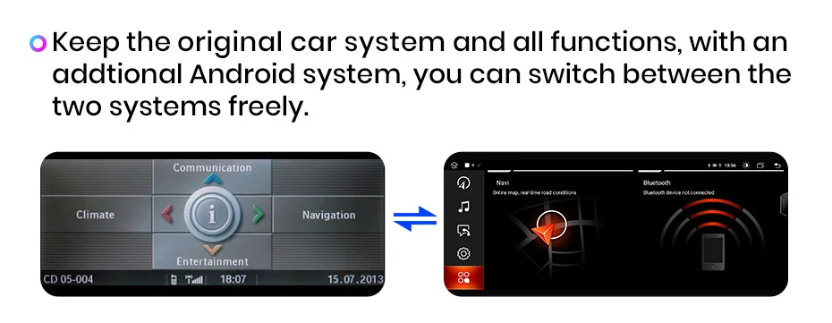 1. Сохраните оригинальную автомобильную систему и все функции и добавьте систему Android, вы можете свободно переключаться между двумя системами