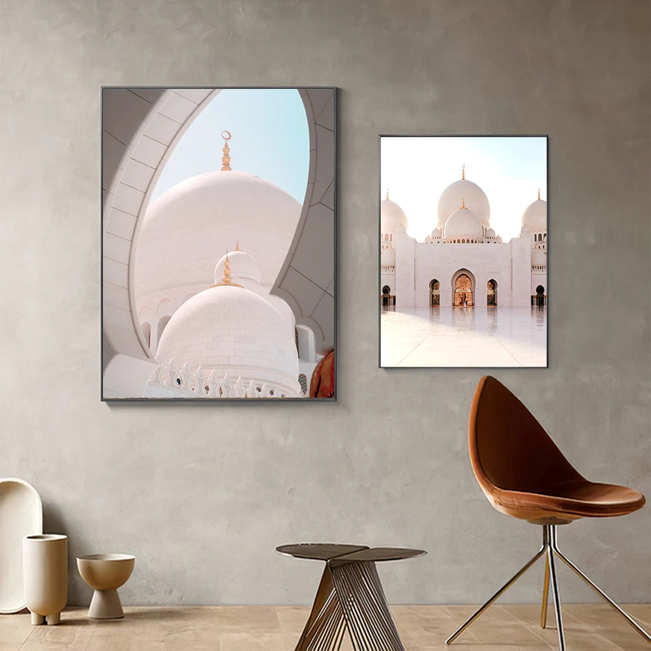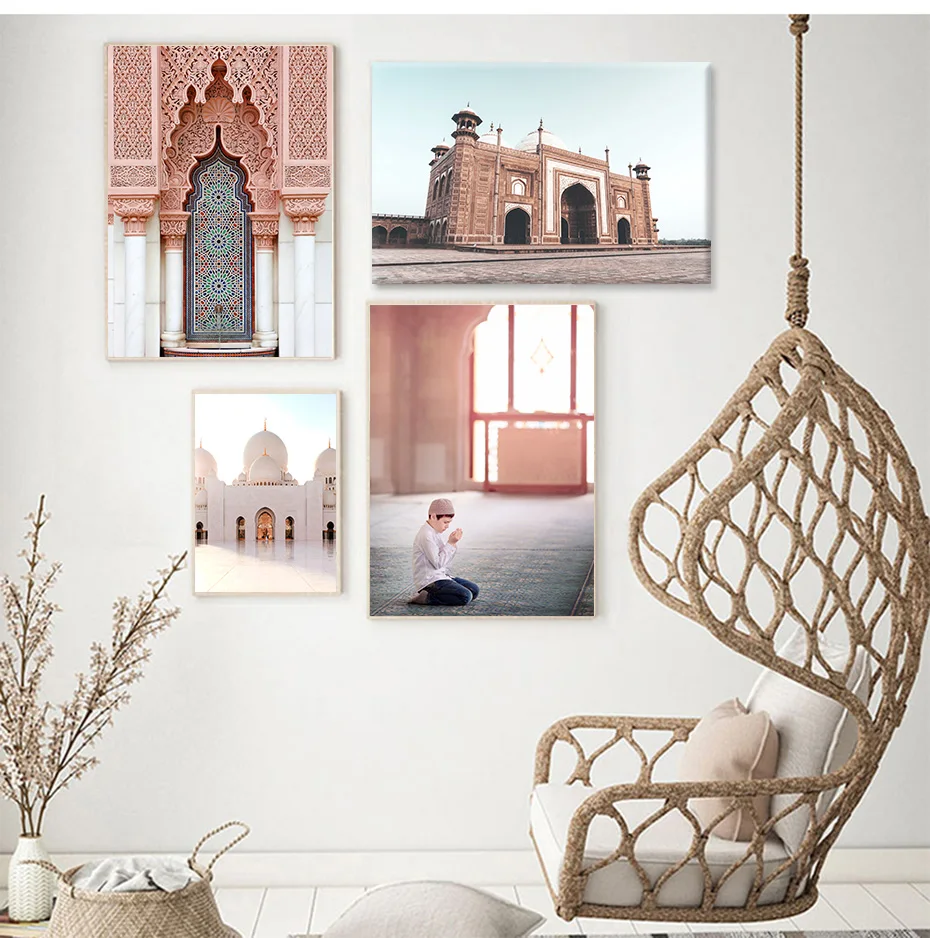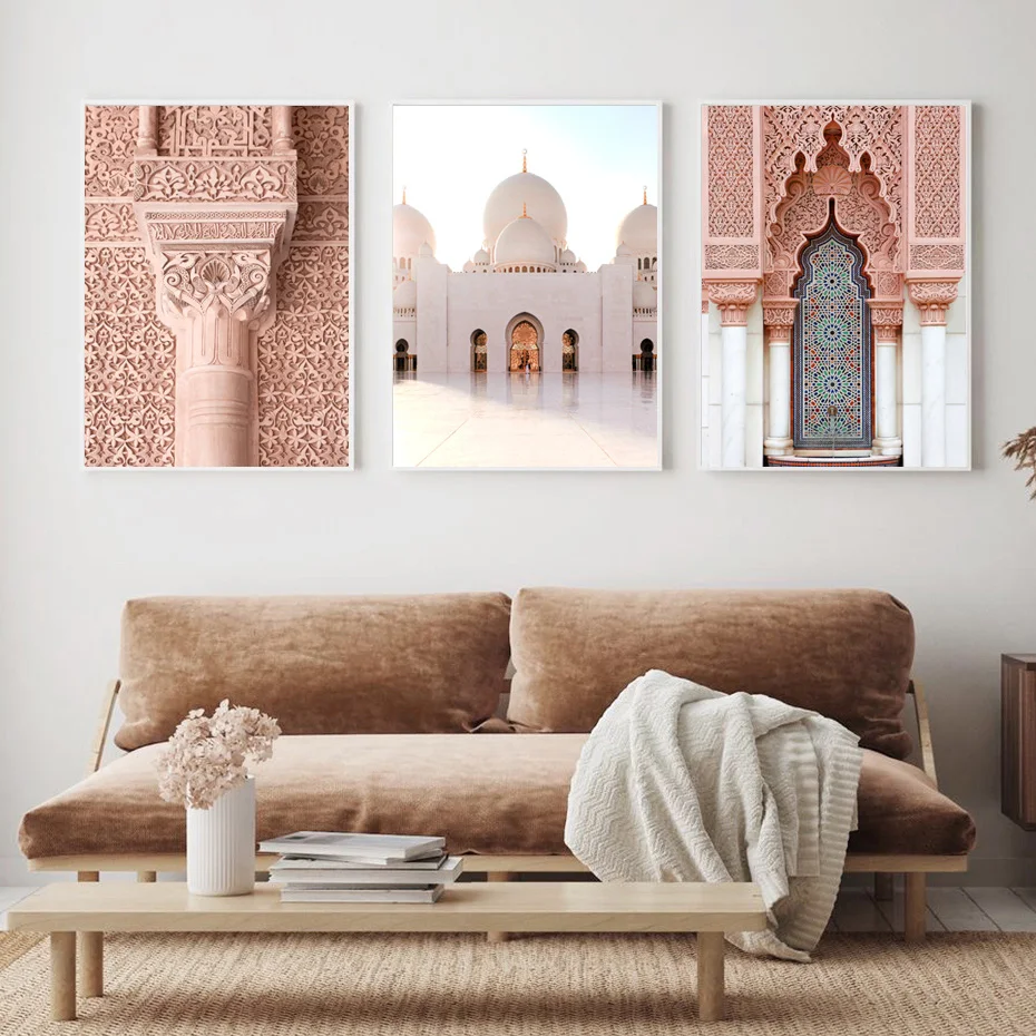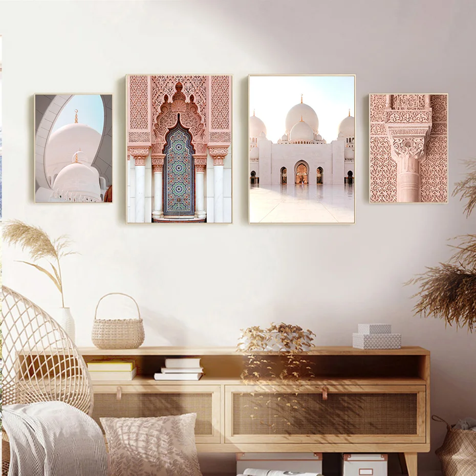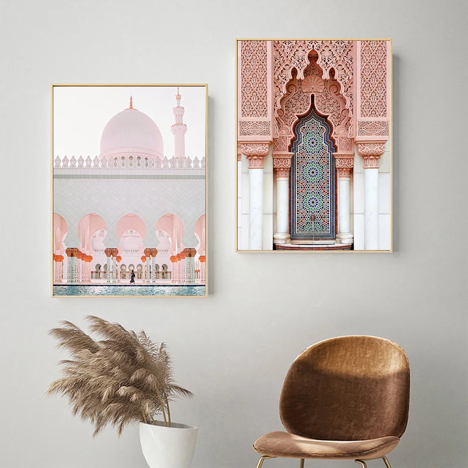 Настенный постер и печать розовых исламских религиозных зданий, HD холст с изображением мечети, Современная гостиная, комнатные декоративные картины