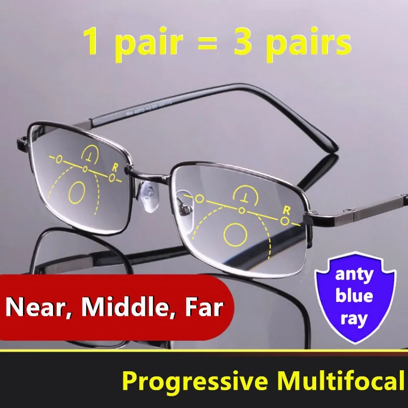 Мультифокальные очки для чтения, мужские, женские, мужские, в метал...