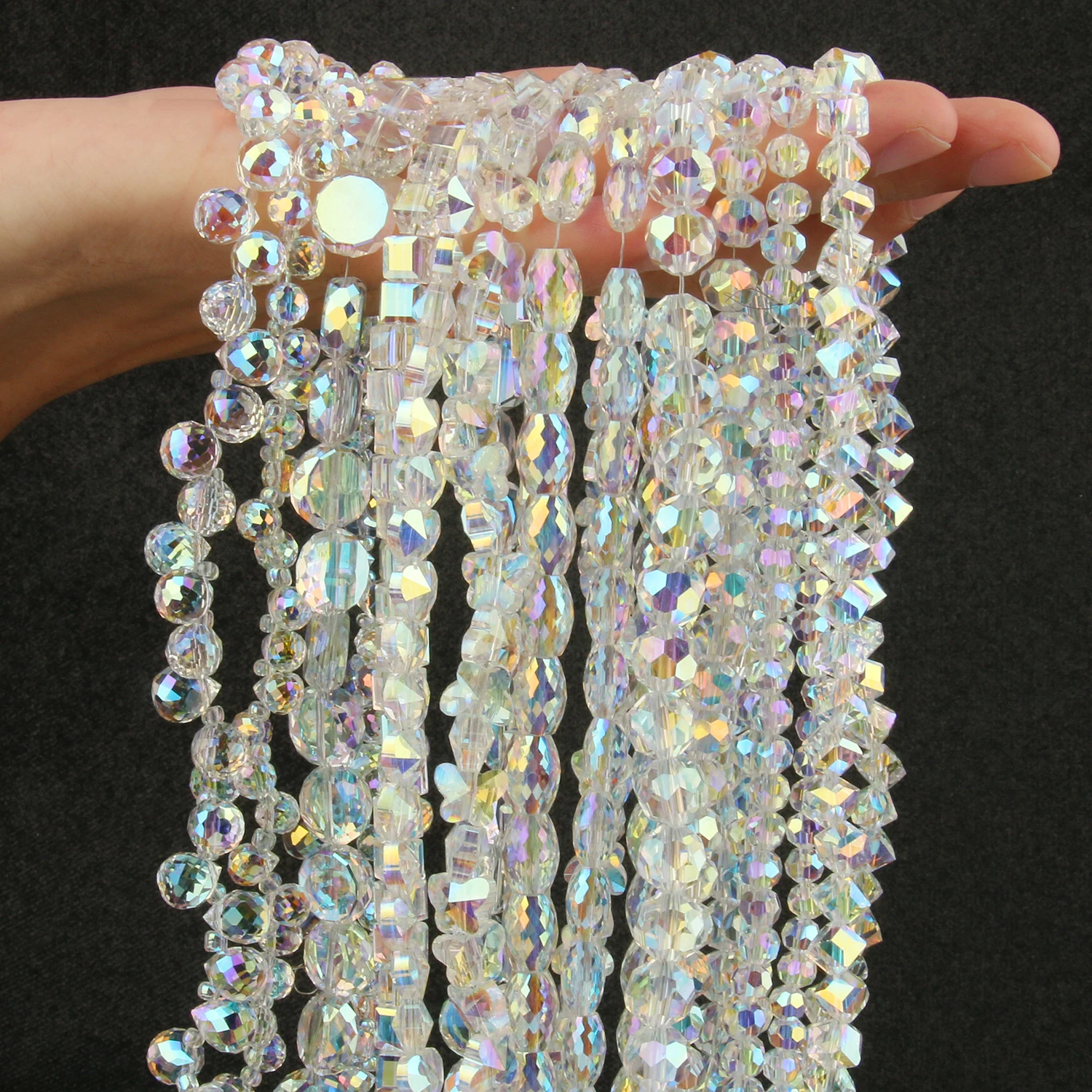 Стеклянные бусины для ювелирных изделий, белые стеклянные бусины с гранями в форме цветка, звезды, бабочки, круга, квадрата, сердца