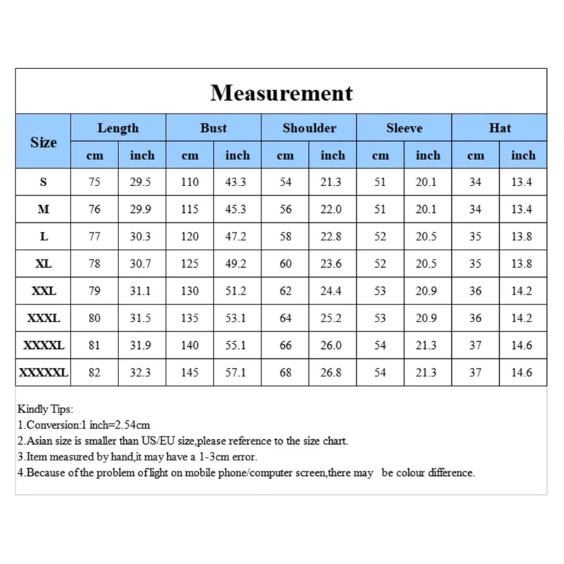 РазмерыДлина/СмОбхват груди/смРукав/сМS7511051М7611552L7712053XL7812554XXL7913055XXXL8013556XXXXL8114057XXXXXL8214558