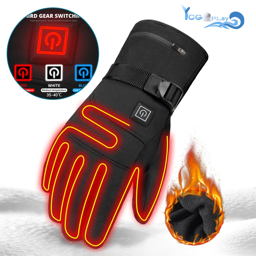 Зимние теплые перчатки для верховой езды, лыжные перчатки с электрическим подогревом и сенсорным экраном, ветрозащитные водонепроницаемые мотоциклетные перчатки с подогревом