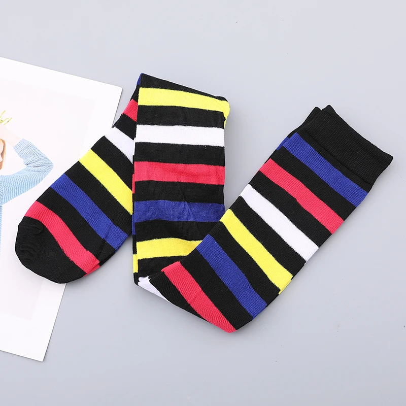Длинные носки женские высокие носки для Хэллоуина сексуальные гольфы полосатые модные радужные Носки Happy забавные Женские носочки