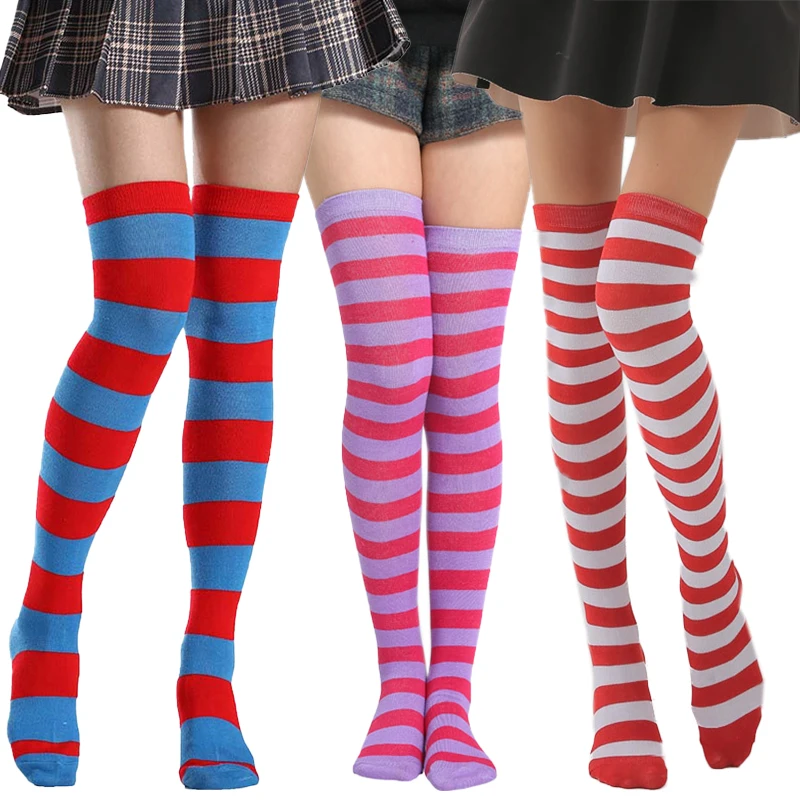 Носки женские, разноцветные, в полоску, выше колена, для Хэллоуина, Косплея