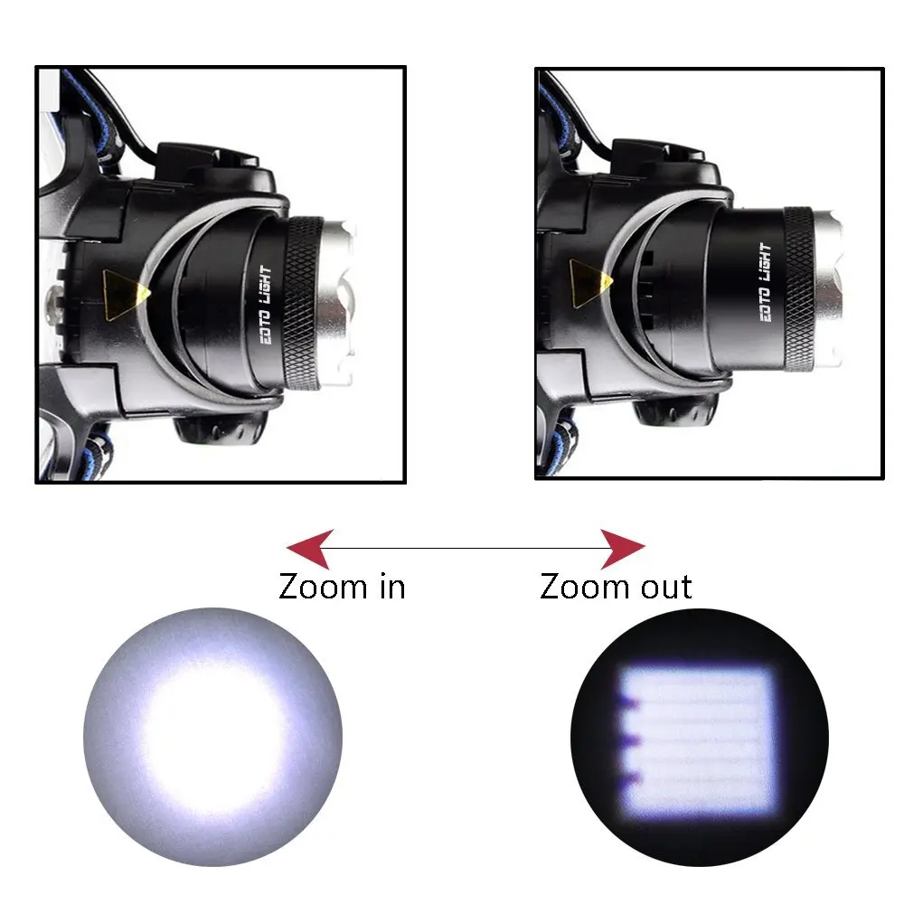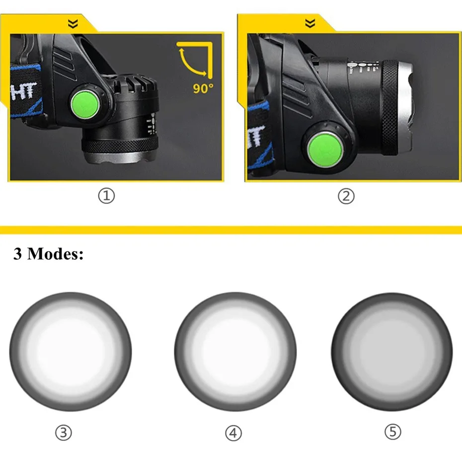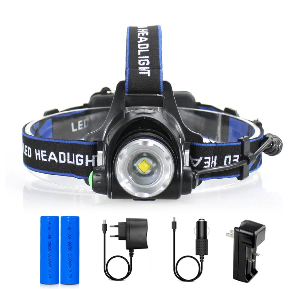Портативный Головной фонарь T6, 3 режима, с перезаряжаемой батареей, водонепроницаемый Головной фонарь с фокусировкой, 2000 лм, налобный фонарь для кемпинга и охоты