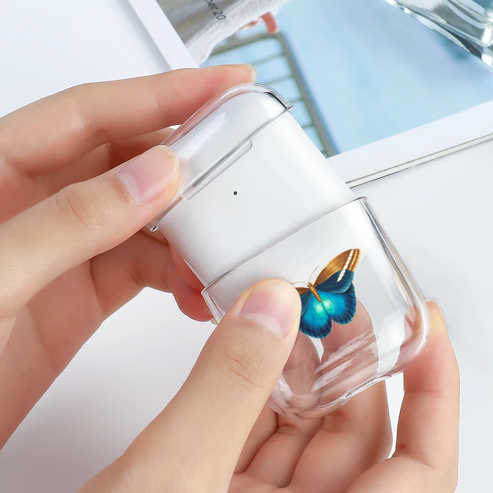 Чехол для наушников с бабочкой для Airpods 2 1, чехол, Прозрачный м...