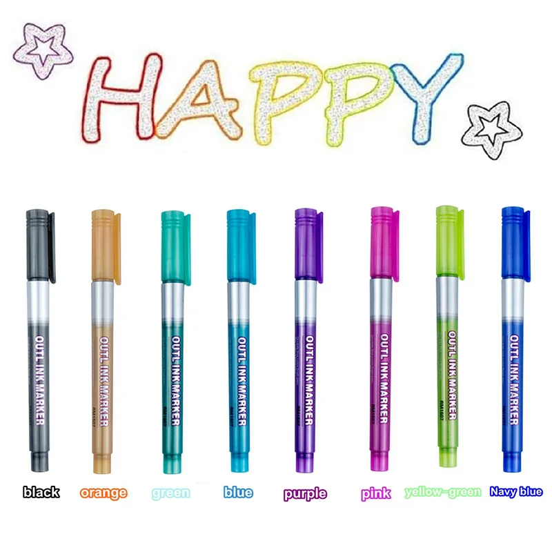 8/12 шт Цвета контур флуоресцентных ручек Kawaii металлический двойной линии для рисования маркера для рисования школьные принадлежности