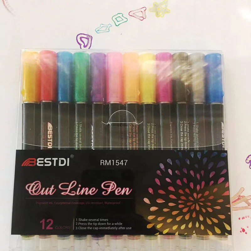 12 Цветов маркер моющиеся ручка для рисования двойная линия контурн...