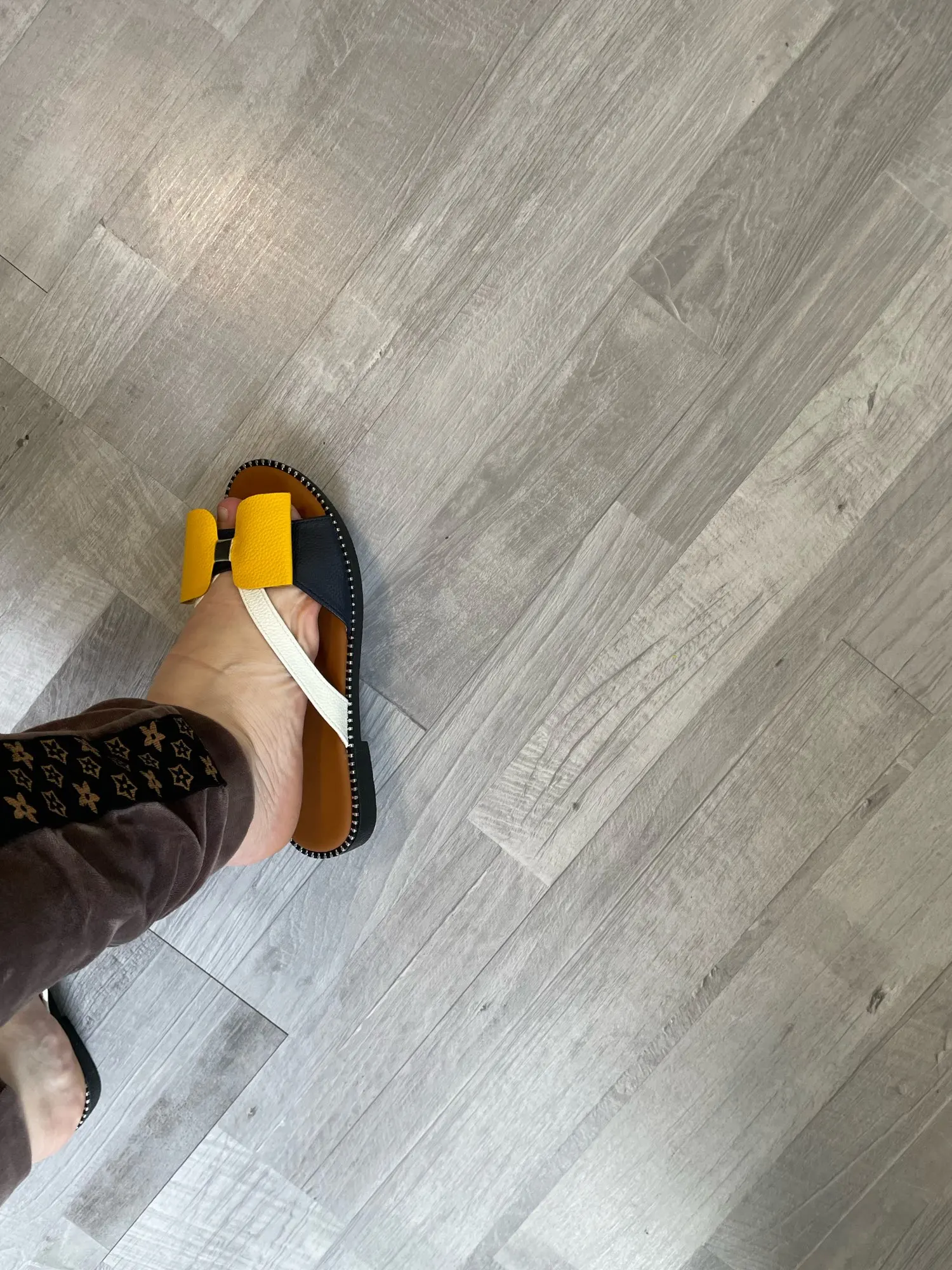 Эти шлепки вторые,но в другом цвете,в этот раз заказала 40 размер, но в длину как 39й,в ширину больше, но мне и не надо было. На фото синие с жёлтым бантом,да деле чёрные с жёлтым ,ну белые шлейки.