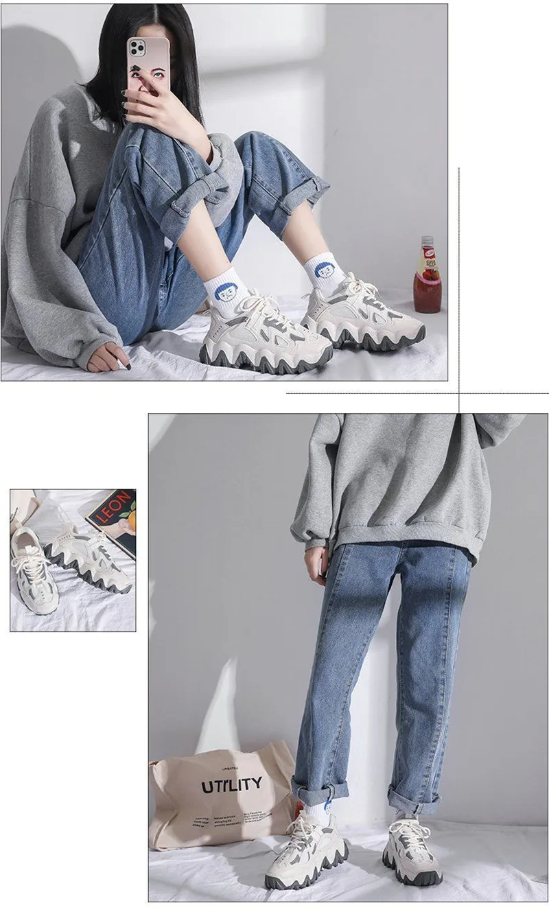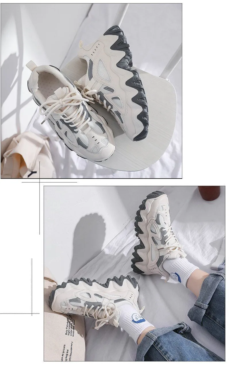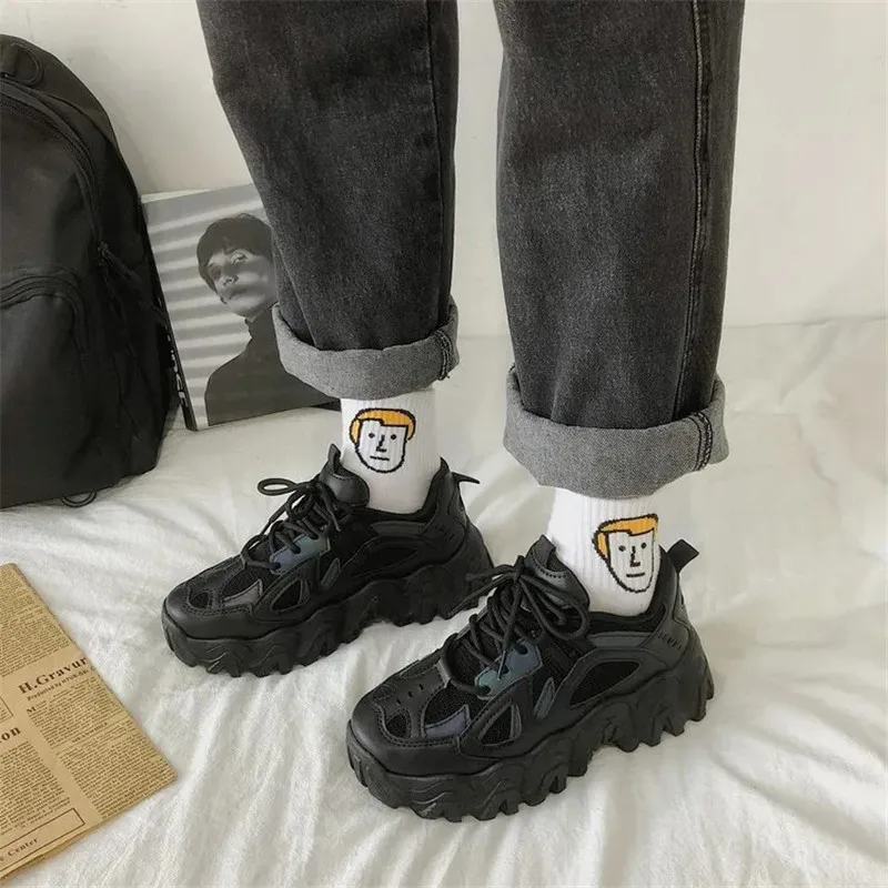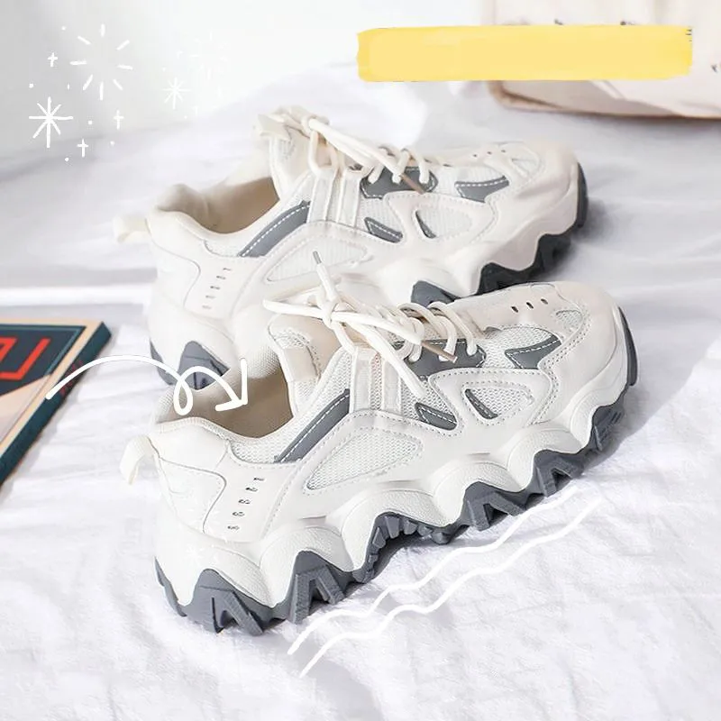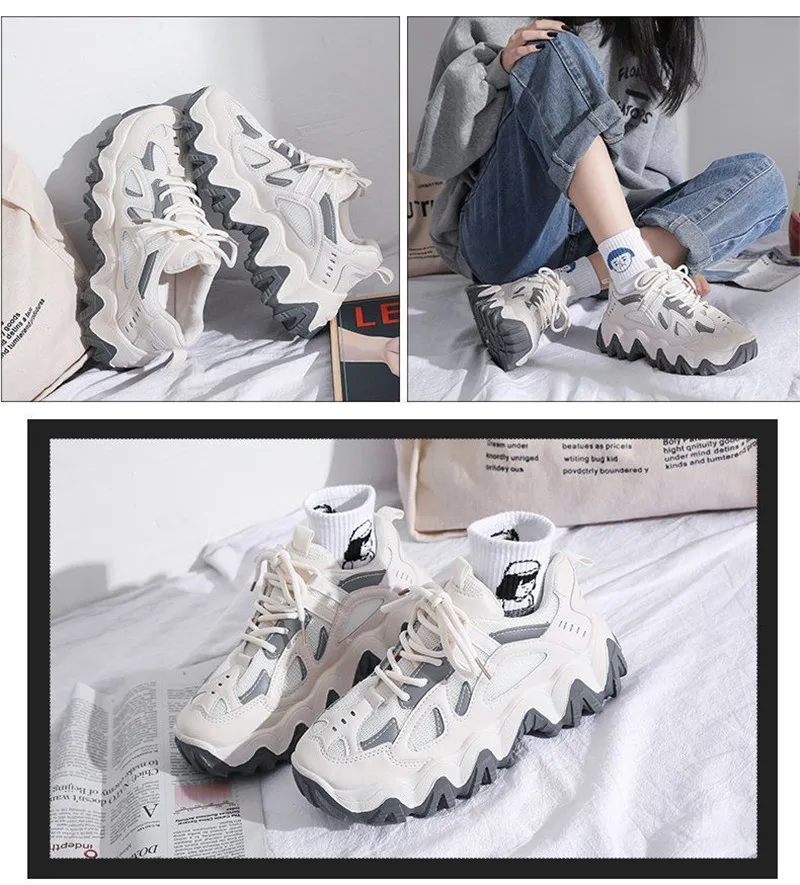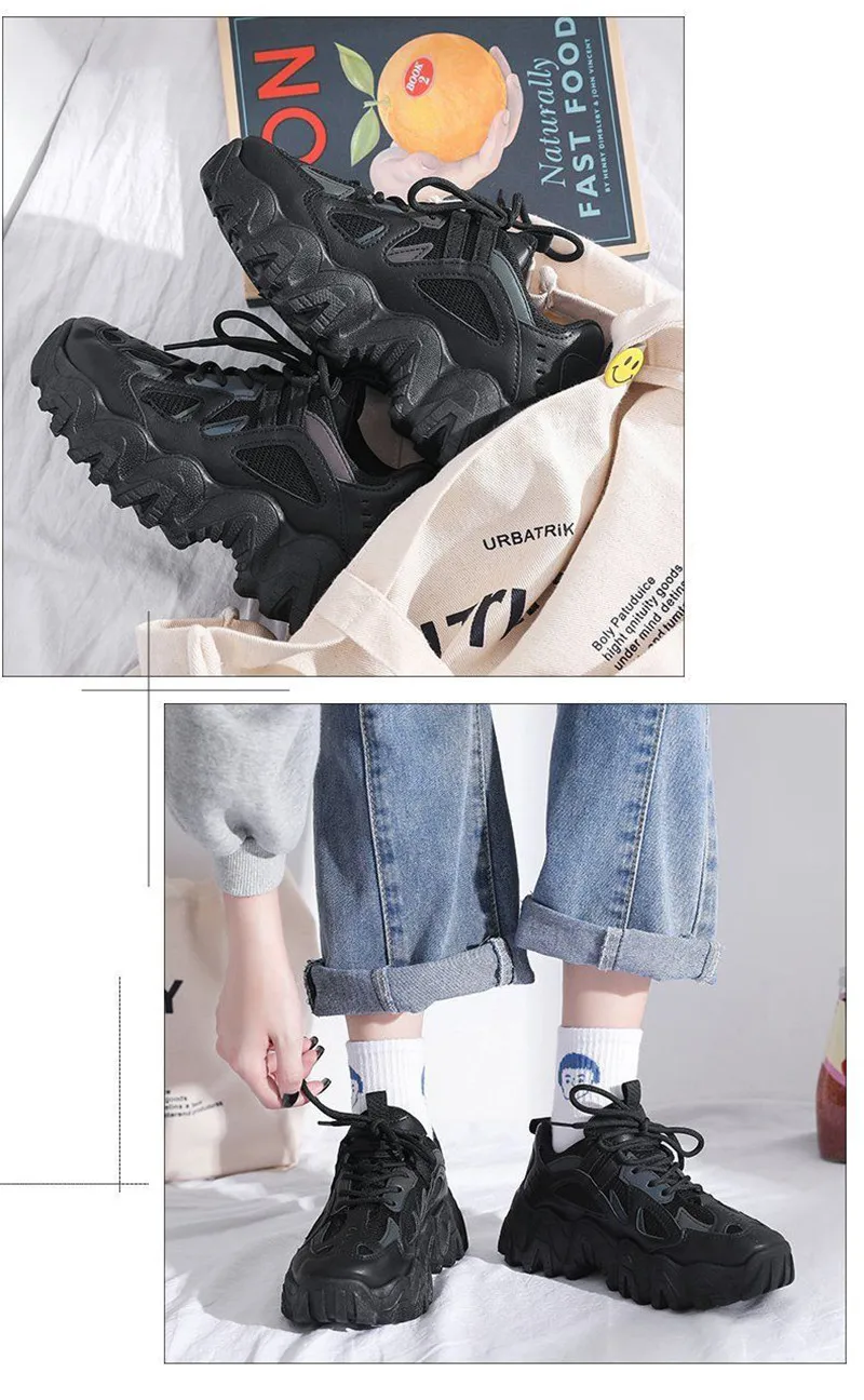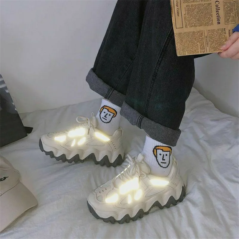 Женские кроссовки со светоотражающими вставками, черные или белые спортивные кроссовки на танкетке, в стиле Харадзюку, в готическом стиле