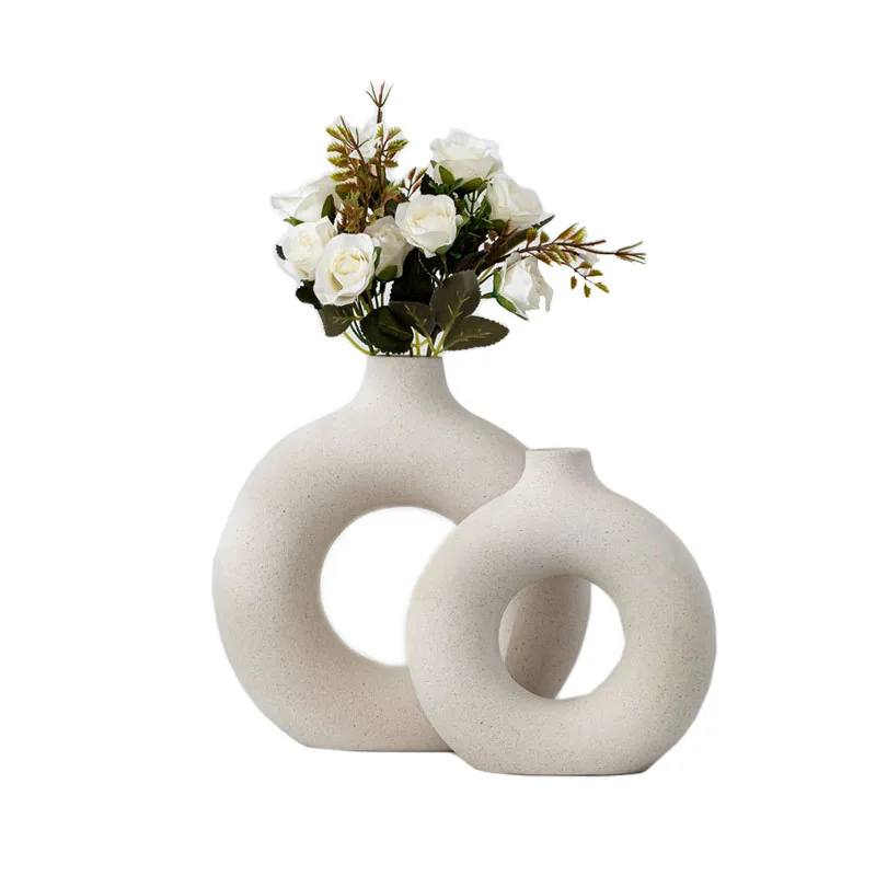Скандинавские круглые полые керамические вазы пончики цветочный горшок для оформления дома аксессуары для офиса рабочего стола Декор интерьера гостиной
