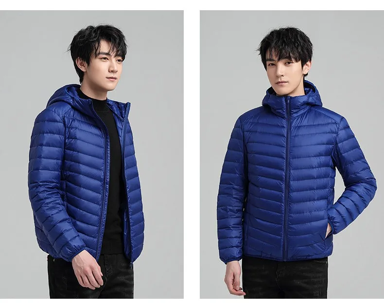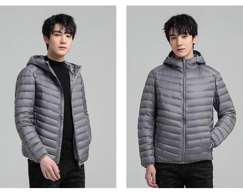 Мужской легкий пуховик с капюшоном, Повседневная ветрозащитная приталенная куртка, Осень-зима 2021