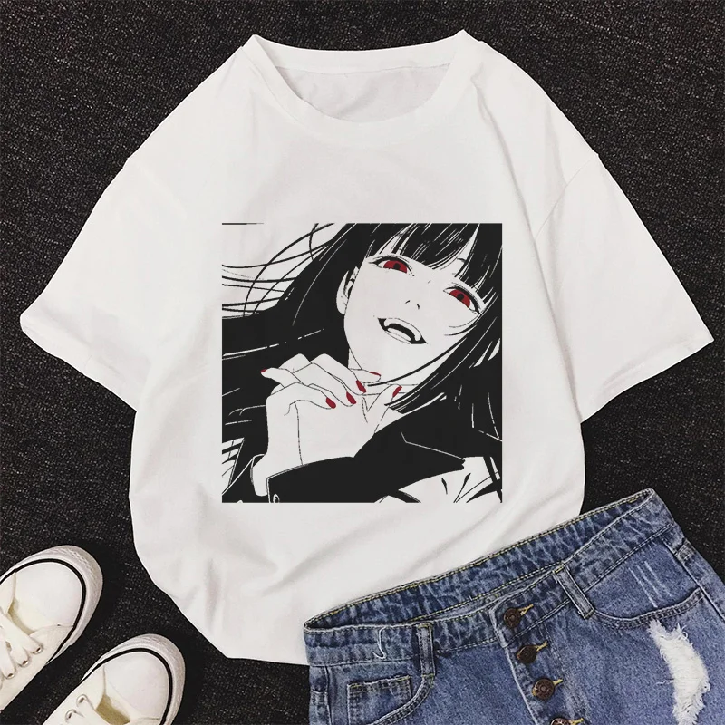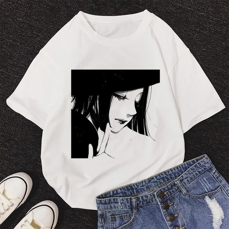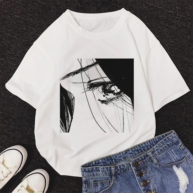 Футболка женская с графическим принтом в японском стиле аниме, бела...