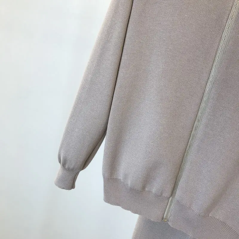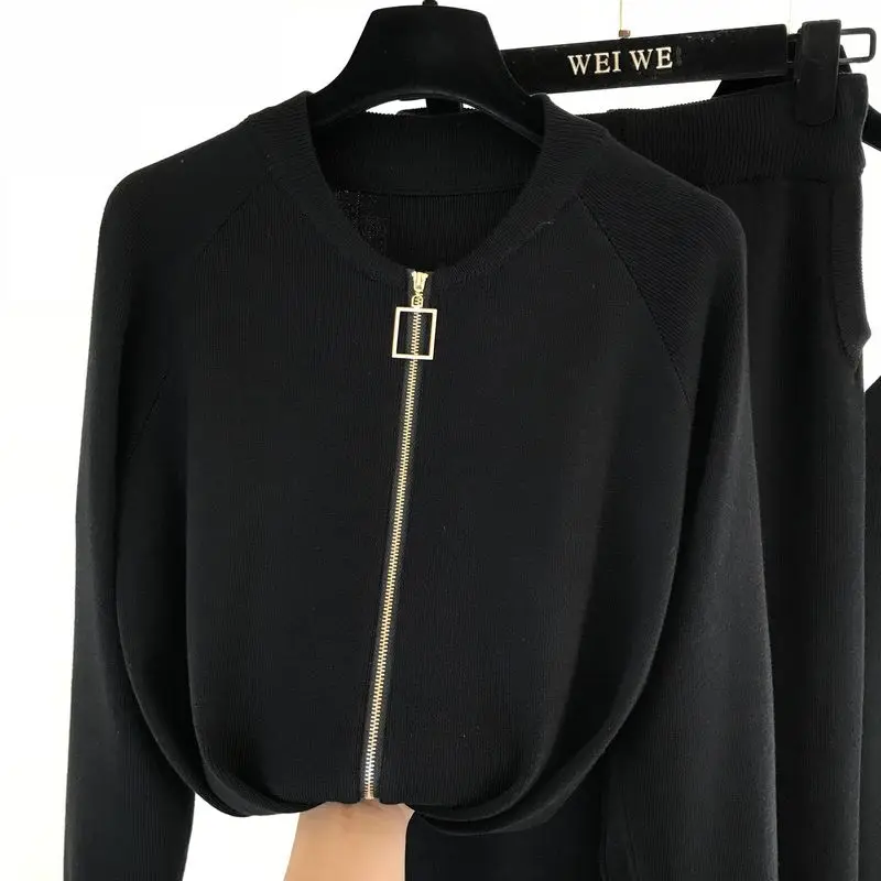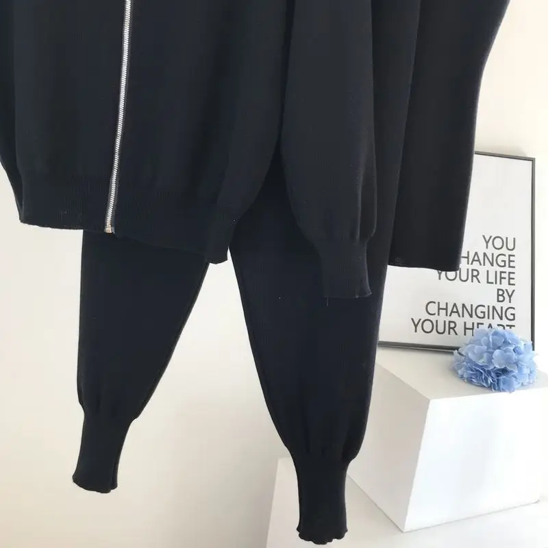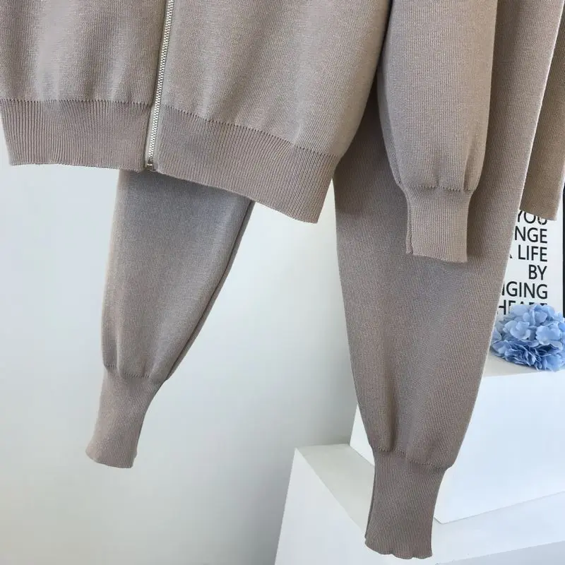 Женские трикотажные кардиганы на молнии, комплект из свитера и брюк...