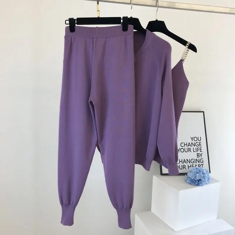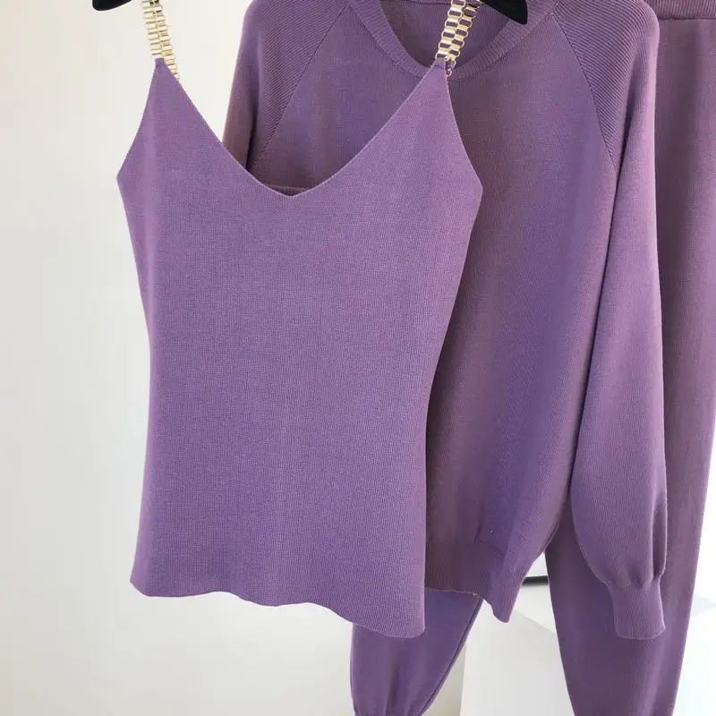 Модный повседневный трикотажный комплект из 3 предметов, Woemn осен...