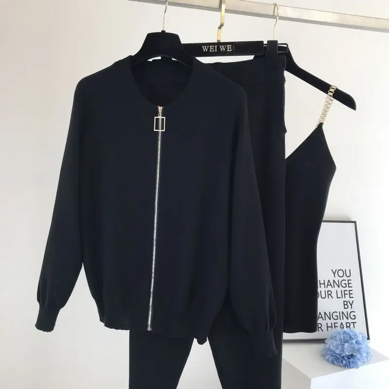 Женский трикотажный кардиган на молнии, комплект из трех предметов:...