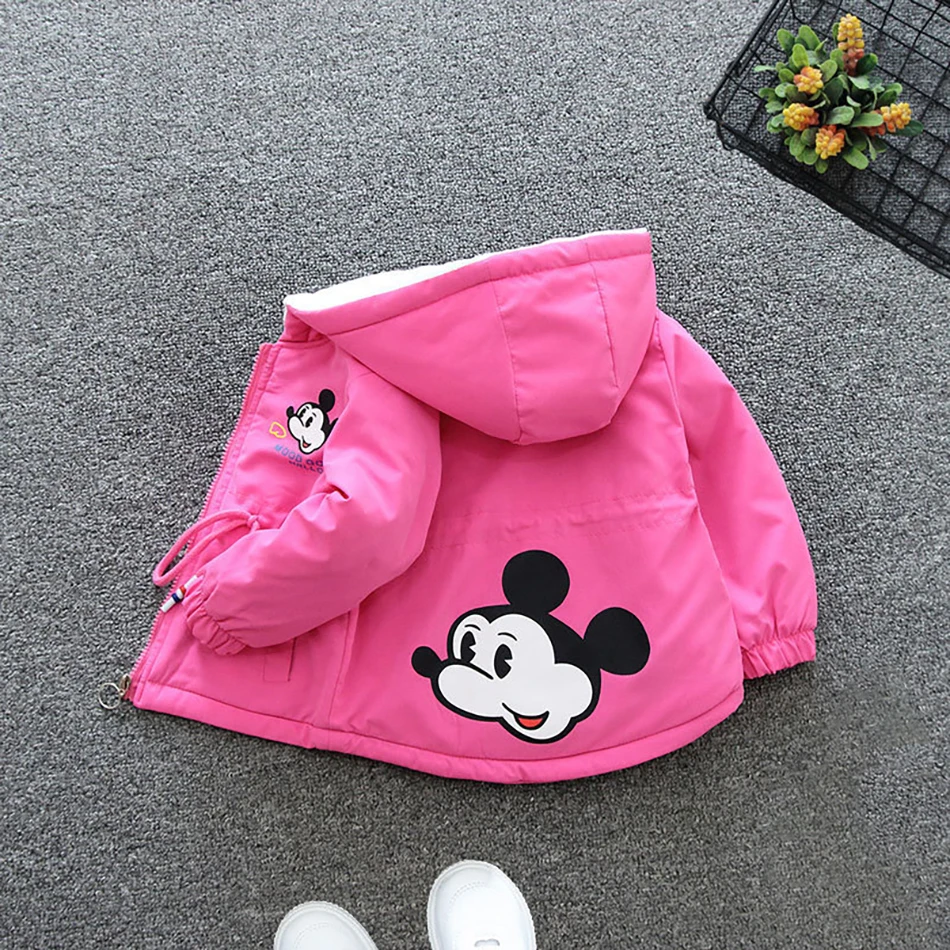 Детская осенняя куртка с мультяшным рисунком Микки и Минни, верхняя одежда для маленьких мальчиков и девочек, ветровка с капюшоном и надписью Холодное сердце 2, Женское пальто