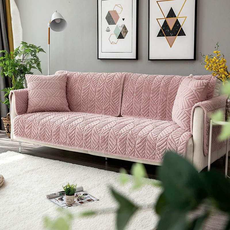 Плюшевый чехол для дивана, нескользящий однотонный чехол на 3 места, для гостиной