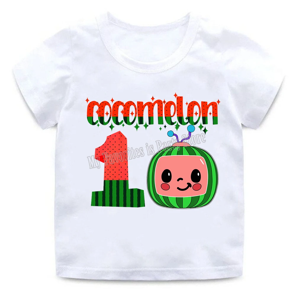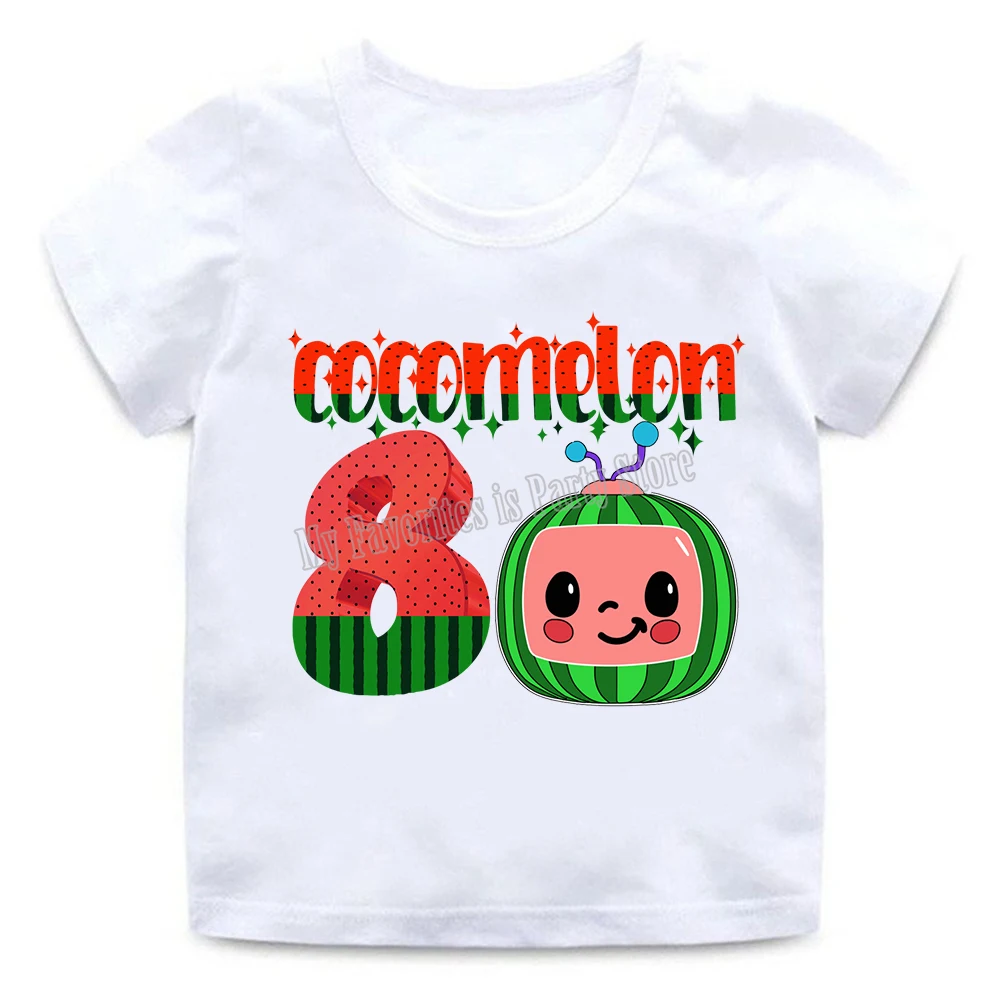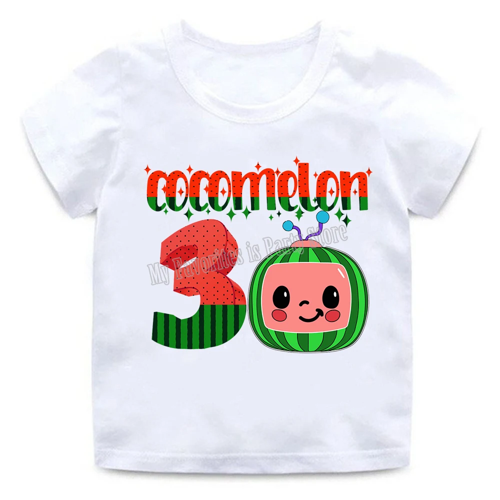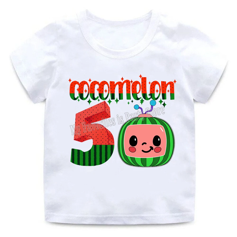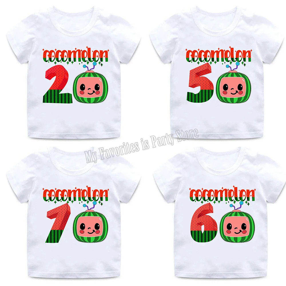 Футболка Cocomelon для маленьких мальчиков и девочек, детская рубашка с цифрами на день рождения, хлопковая Футболка с принтом арбуза и рисунком, детский подарок